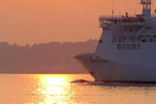 | Während der Nacht laufen wir verschiedene Häfen an. Der nächste Tag beginnt mit einem beeindruckenden Sonnenaufgang an. | |