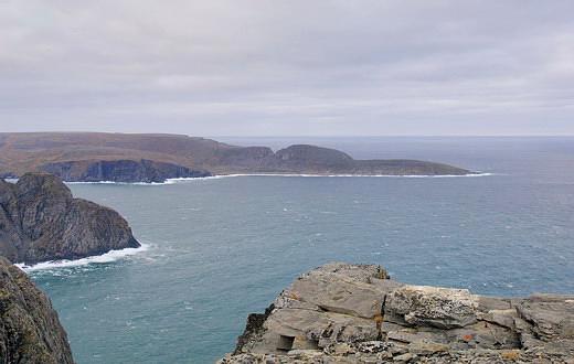 | Und nun bitte nicht enttäuscht sein: das bekannte Wahrzeichen des Kaps, die Weltkugel, steht nicht auf dem Nordkap, sondern auf der nächsten, mächtigeren Landzunge. Hier der Blick auf das "richtige" Nordkap. | |