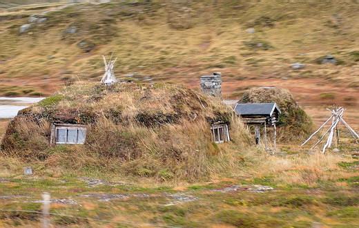 | Auf der Rückfahrt nach Honningsvag gelingt noch dieses Bild einer authentischen Hütte der Samen. | |