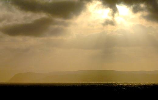 | Noch hängen die drohenden Wolken tief über der See.... | |