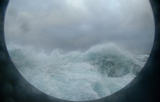 | Beide Bilder sind aus unserem Kabinenfenster "geschossen". Manche Foto-versuche enden mit einem schwarzen Bild, nämlich immer dann, wenn ein Brecher das Bullauge verdunkelt. | |