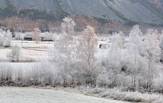 | Rauhreif überzieht Landschaft und Häuser mit einer Ahnung des kommenden Winters. | |
