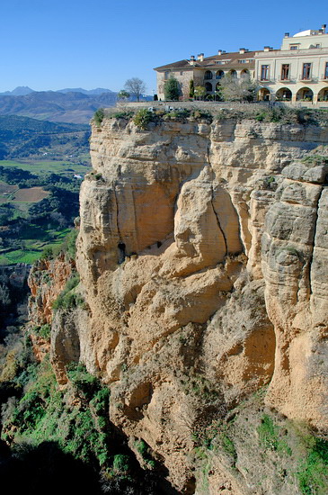 Für meinen Aufenthalt hatte ich den Parador gewählt, der im ehemaligen Rathaus von Ronda exponiert auf der Spitze der Klippe liegt. Der atembe-raubende Ausblick in die weite Landschaft und auf das Wahrzeichen von Ronda, die Bogenbrücke, war inklusive. |