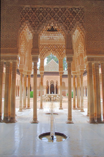 Der Löwenhof (Patio de los Leones) spiegelt das Lebensgefühl der Nasriden: 124 schlanke Marmorsäulen vermitteln Leichtigkeit und Lebensfreude. |