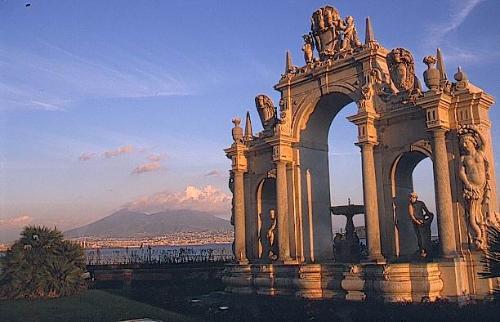 | Neapel Triumphbogen mit Vesuv Pompeji und Herkulaneum lassen grüßen! |