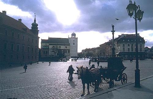 Unsere Reise führt uns jetzt nach Westen, das nächstes Ziel ist Warschau - Hauptstadt unseres EU-Partnerlandes Polen Kutsche vor der Sigismund-Säule und dem Königsschloß |