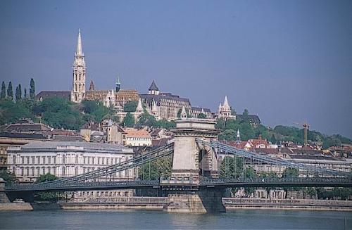 Budapest, entstanden aus den Stadtteilen Buda und Pest, wird dominiert vom Burgberg und der "Fischerbastei mit der weltberühmten Kettenbrücke" |