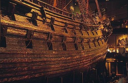 | Der Stolz der Schwedischen Flotte: die "Wasa" gesunken auf ihrer Jungfernfahrt im Hafen von Stockholm am 10. August 1628, wiederentdeckt 1956, gehoben und seit 1990 einmaliges Museumsstück |