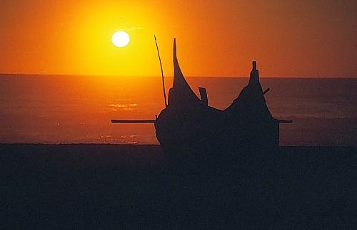| Fischerboot im Abendlicht Atlantikküste bei Pedrogao |